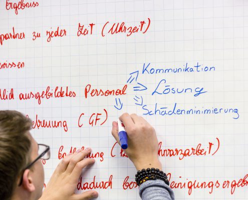 Wir schulen unsere Mitarbeiter:innen in den Bereichen Kundenkommunikation, Rhetorik, Präsentation, Deeskalation, Selbstverteidigung, telefonische Gesprächsführung sowie Compliance.